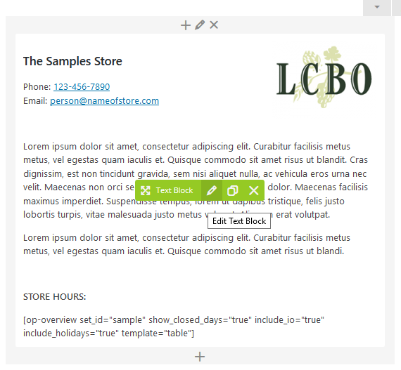 2. Once you are on the page with content you want to edit, hover over the section you want to edit. You will see that a green popup will appear, click on the pencil icon.