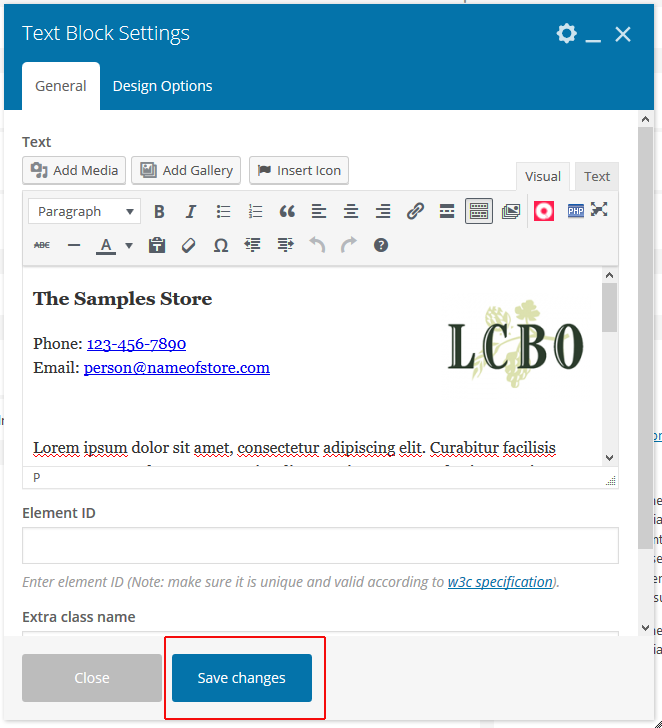 3. A box will pop up with the content of that section. Make any changes you wish. Once you are done, click the “Save Changes” button.