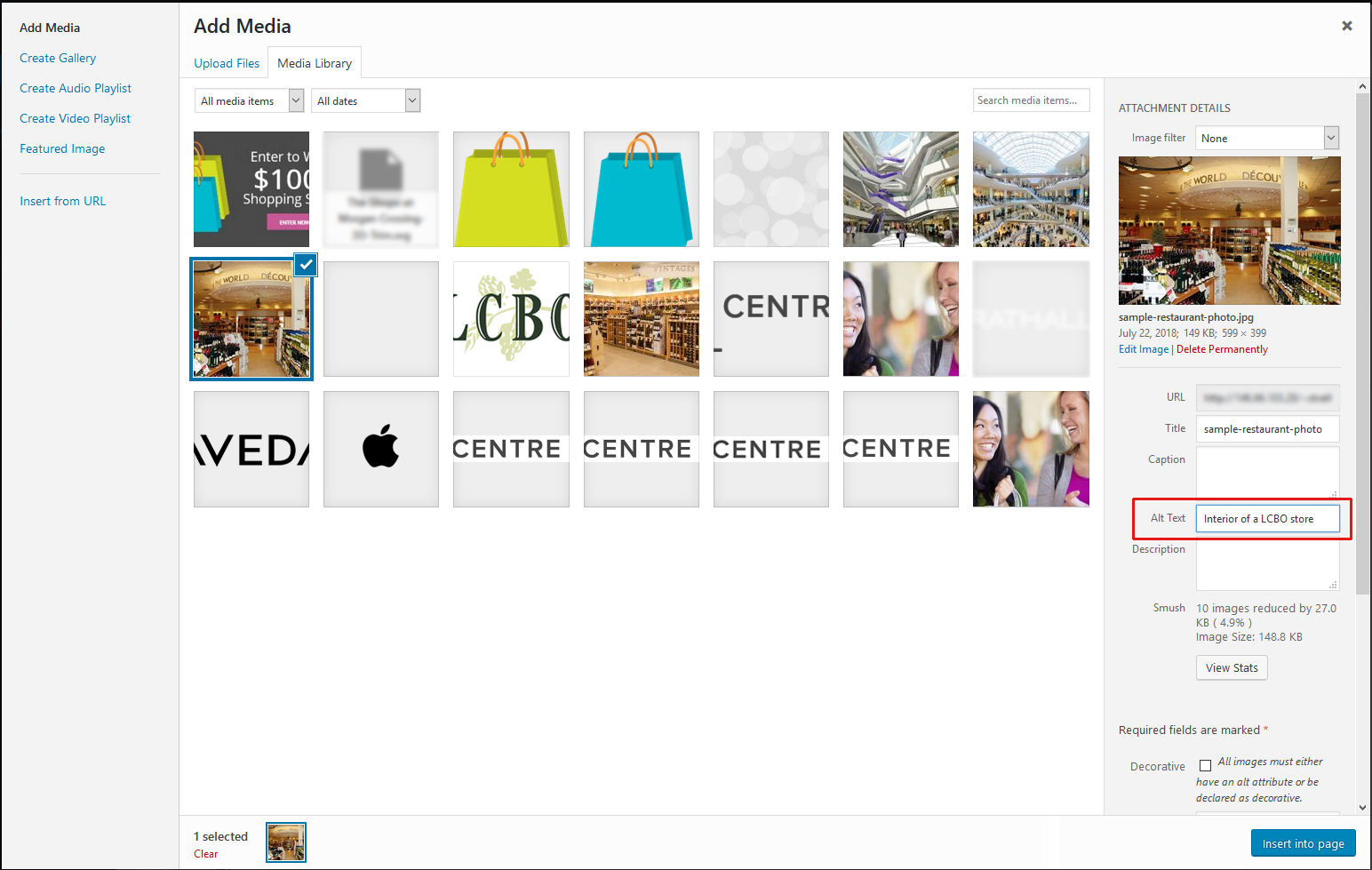 In WordPress it is easy to add alternative text. When you are uploading the photo, all you need to do is enter your description of the image in the “Alt Text” field under the photo. (Here is an article that explains how to write good alt text descriptions.)