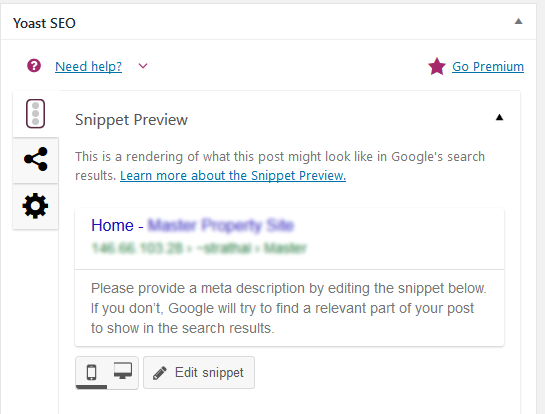 Please note the Slug (the URL) currently contains the site IP and the folder structure. When the site is live this will no longer be the case and it will show your domain name, so there is no need to alter these parts of the slug with the exception of the page title.